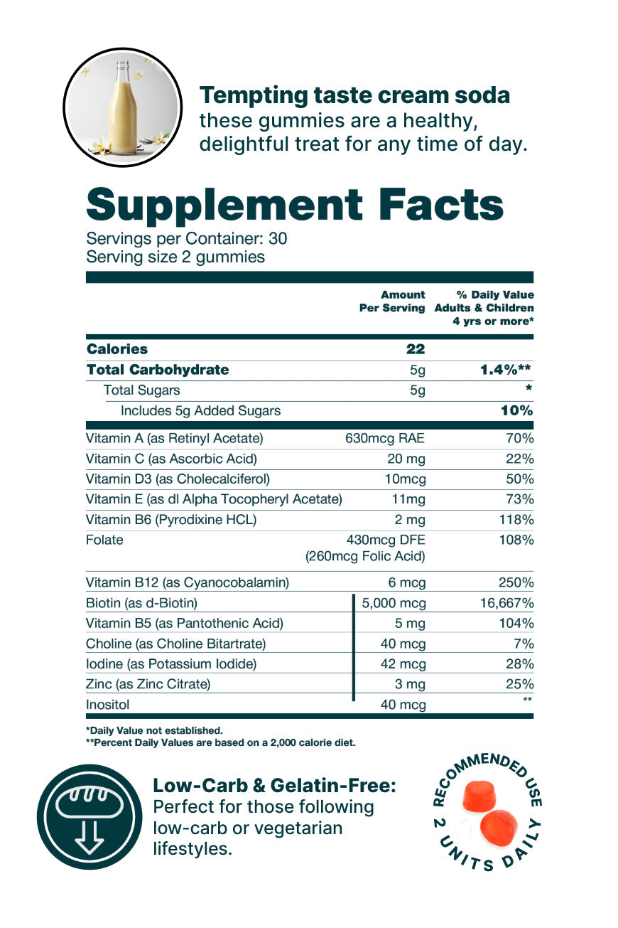 Sugar, Glucose Syrup (Tapioca Syrup), Water, Citrus Pectin, Citric Acid, Cream Soda Flavor, Black Carrot Extract and Beta Carotene (for color).